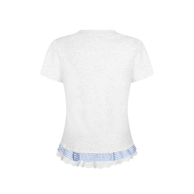 Casual Street Wear Embroidered Classic Alphabet Bow T-Shirt Crew Neck