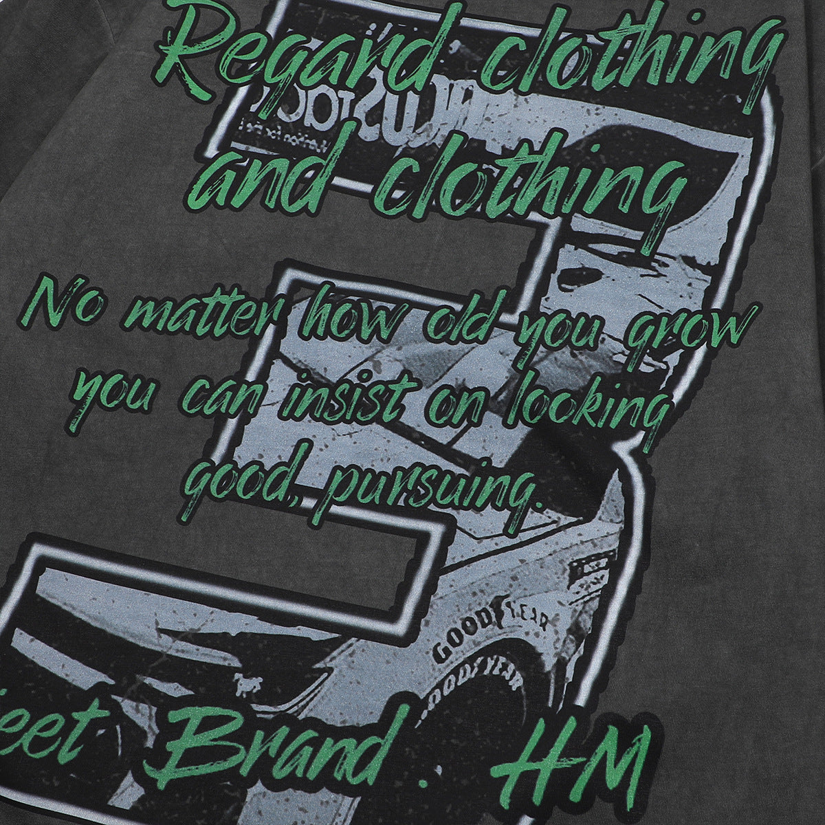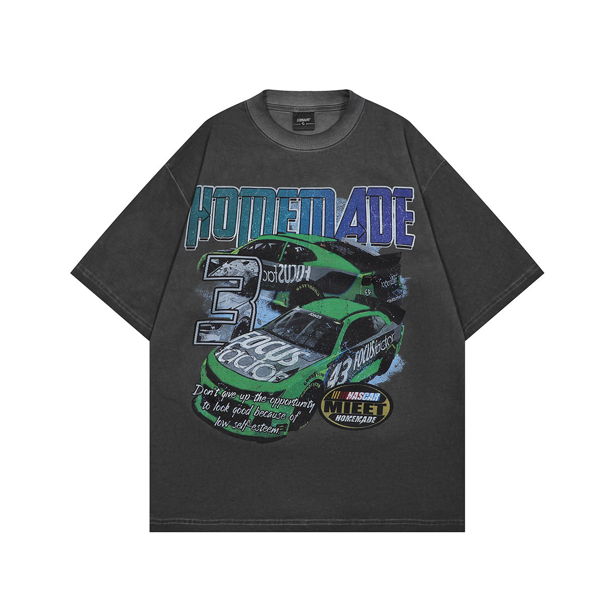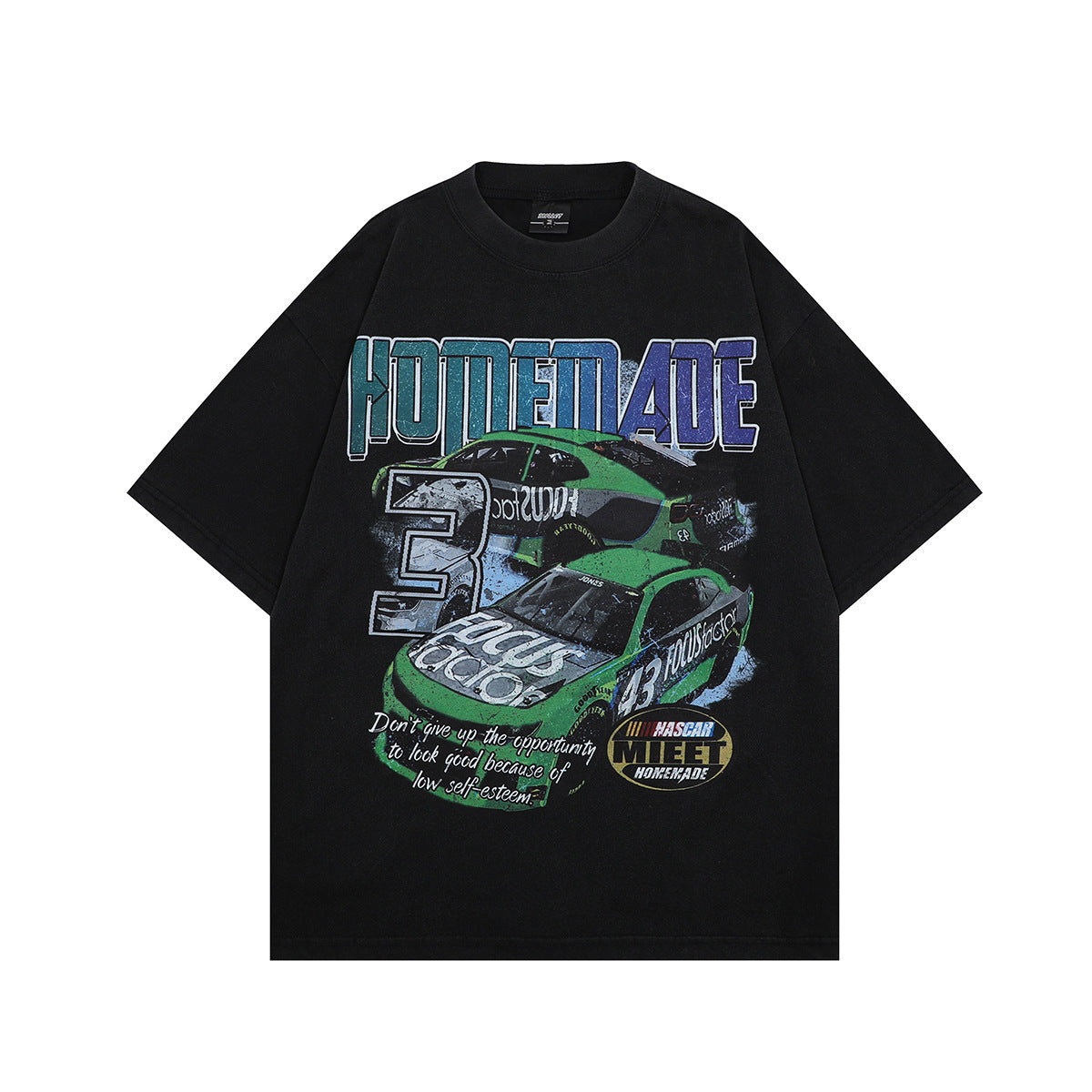 1990 Fashion T-Shirt Summer Locomotive Printing Washing Water Old Short Sleeve T-Shirt